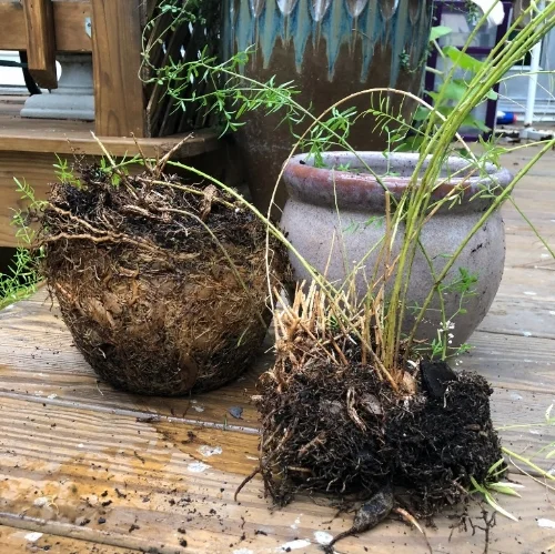 This plant overstayed in its pot so long that its roots had pressed toward the pot's circumference, eventually weaving themselves together to take on the shape of the pot.